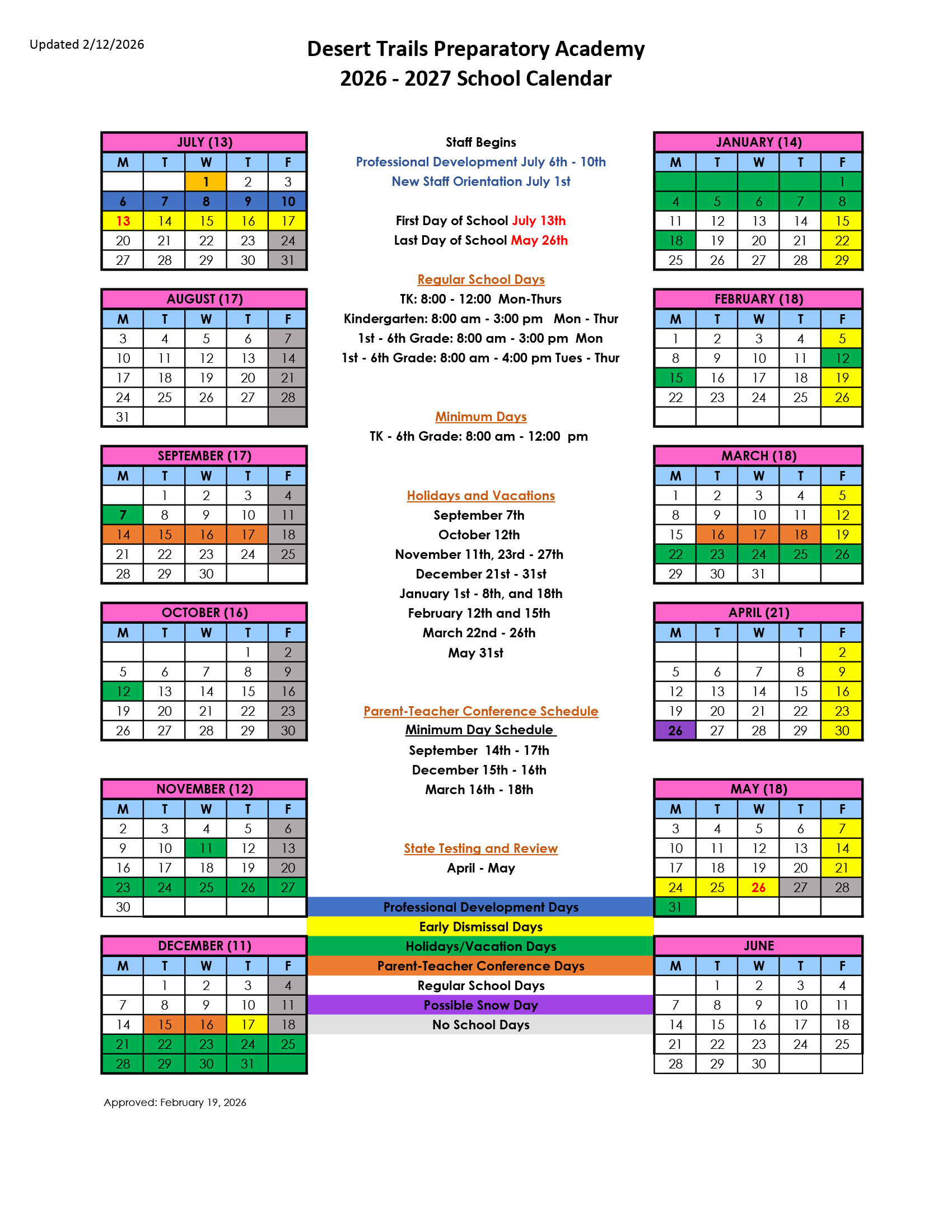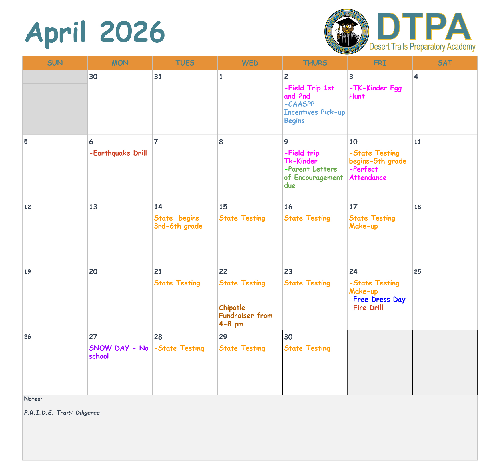 The Desert Trails Preparatory Academy Board meets every month throughout the school year. Other meetings or special meetings may be added throughout the year. These meetings are open to the public in addition to the board members. Regular board meetings are at 4:15 pm. Special and emergency meetings may be at different times.